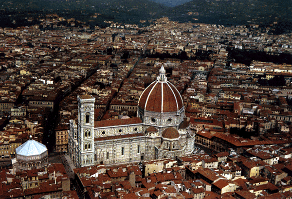 A város házai fölé magasodó, hatalmas kupola nemcsak technikai szempontból a század egyik csúcsteljesítménye. A művészettörténet a reneszánsz építészet kezdetét a firenzei dóm kupolaépítésétől számítja.