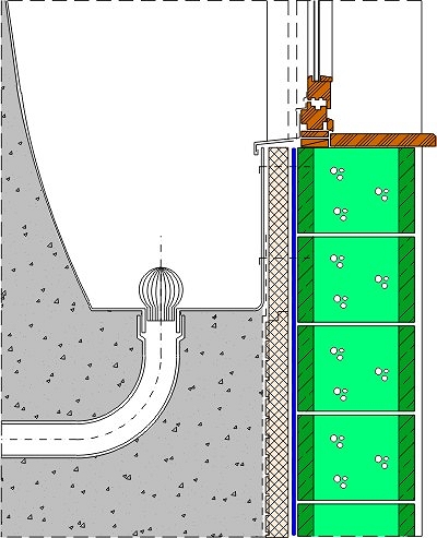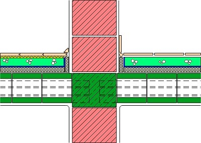 Fordított rétegrendű parkolótető. Falszegély kialakítása. Extrudált PS hab hőszigetelés.