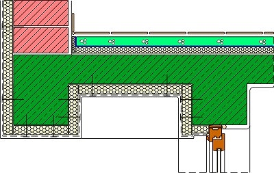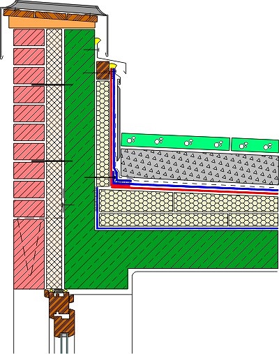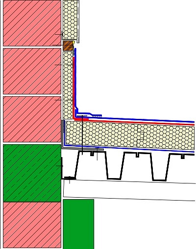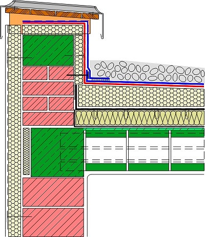 Egyenes rétegrendű terasztető. Attika részlete. Expandált PS hab hőszigetelés.