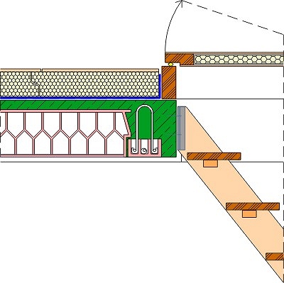 Lefelé hűlő födém részlete középfőfalnál. Expandált PS hab hőszigetelés.