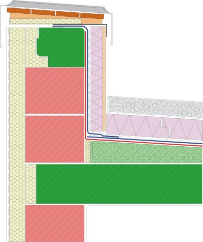 Homlokzati fal és magastető csatlakozása. EXPERT® fal- és expandált PS hab tető hőszigetelés.